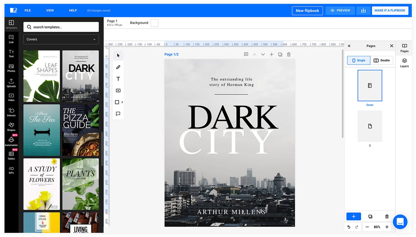 Unleash the potential of your written word with a book cover that exudes creativity. This software has a very simple interface. Choose from a wide range of design tools including image effects, fancy text and stock images! This software provides you with beautiful covers for books, boxes, dvds, screenshots, cards, mobiles, tablets, notebooks and monitors. Then, leave the finishing touches to the creator.